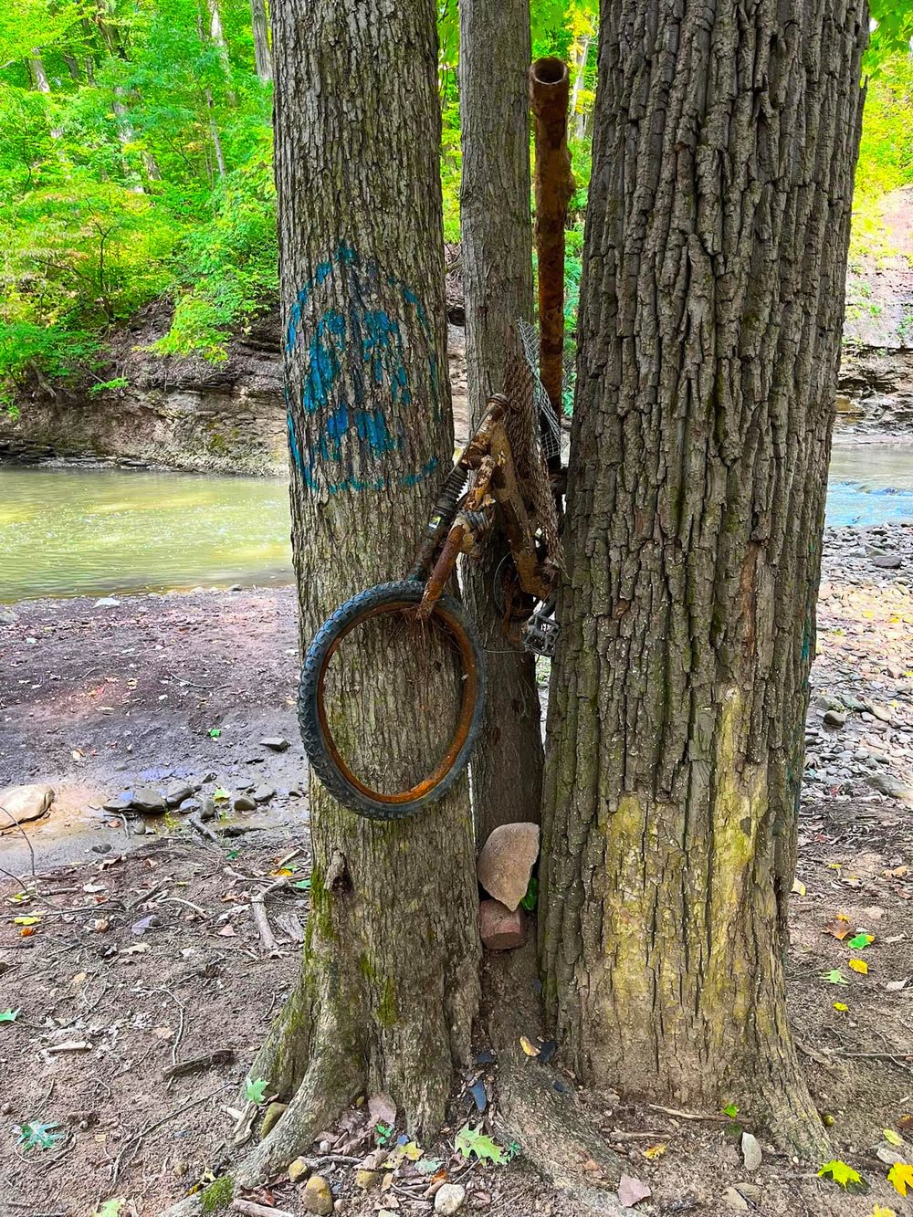 A human object rests where it no longer belongs. Trees rise, metal weakens, and the boundary between artifact and landscape slowly dissolves. Ohio.