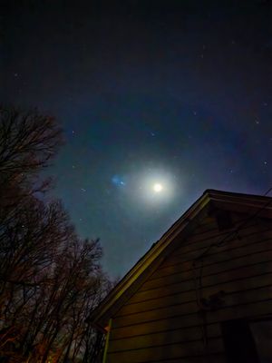 The house sleeps while the sky stays awake. Moonlight spills across wood and siding, blurring the boundary between the familiar and the vast. Pennsylvania.